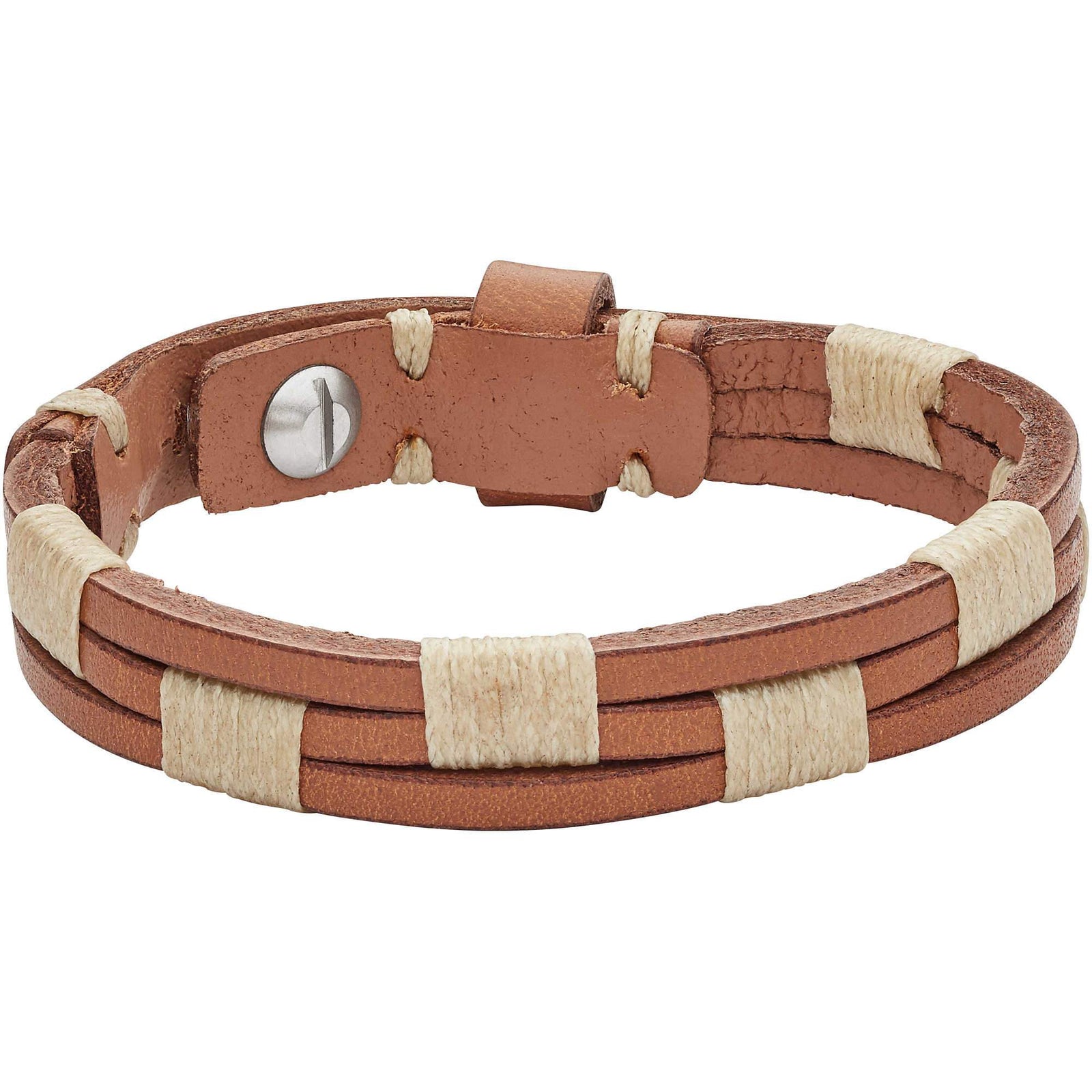 Women's bracelet Fossil ref. JF00116 with double leather cord with central heart-shaped charm embellished with a white crystal and on its sides small steel and crystal charms. Maximum diameter 8 cm, adjustable by sliding the knots. Sliding closure with steel loop.