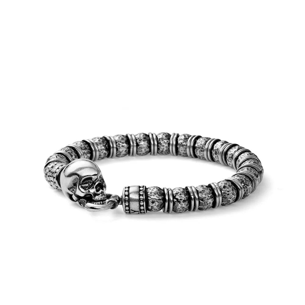 Bracciale da uomo Maria Cristina Sterling collezione Skull ref. G3718 in argento 925‰ rodiato con teschio centrale. Lunghezza regolabile da 19 a 22 cm. Chiusura con moschettone.