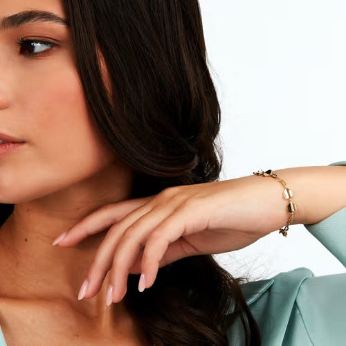 Bracciale da donna Morellato collezione Paillettes ref. SAWW03 in acciaio dorato con cuori. Lunghezza 16+3 cm. Chiusura con moschettone.
