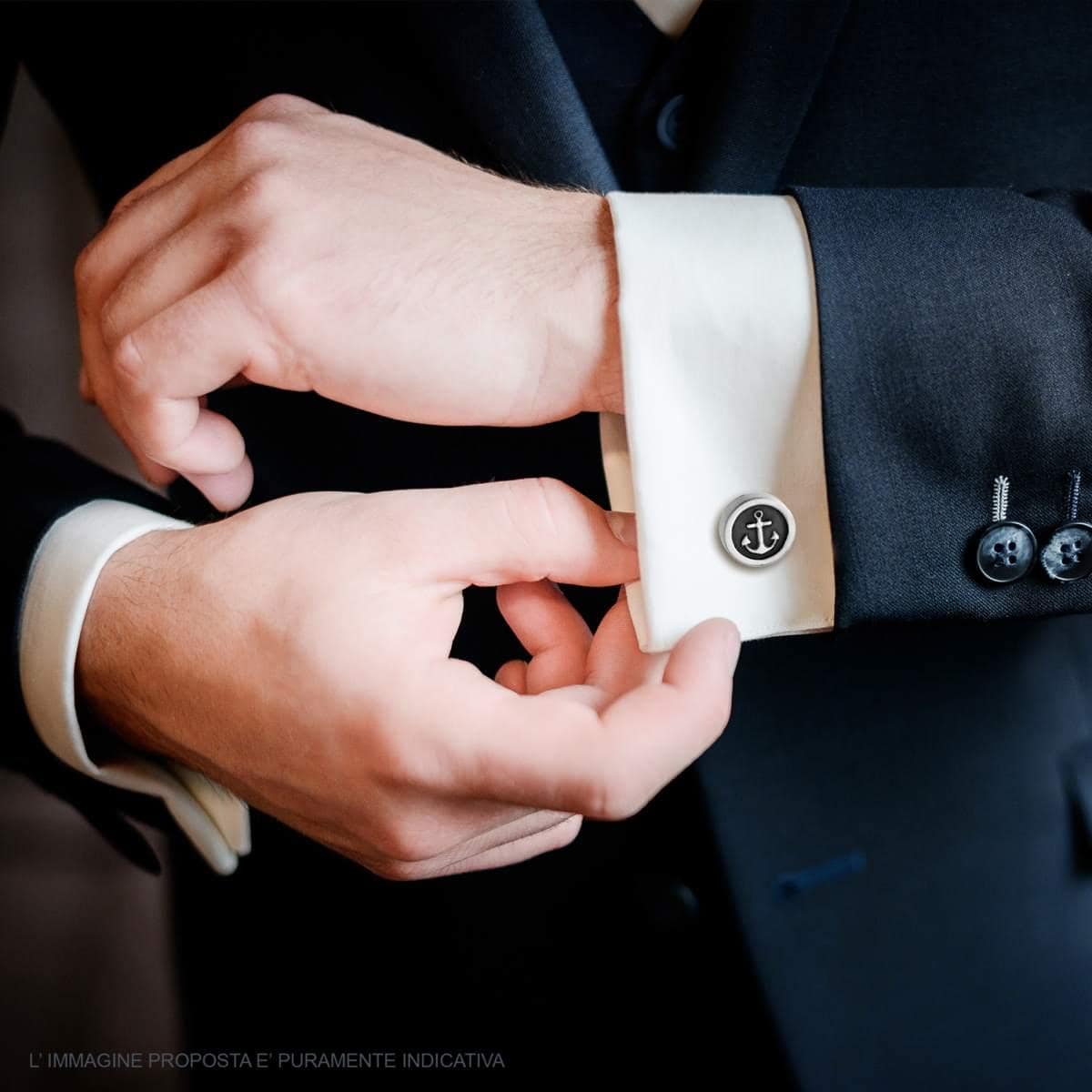 Gemelli da uomo a forma ovale 20x11 mm in argento 925‰ rodiato.