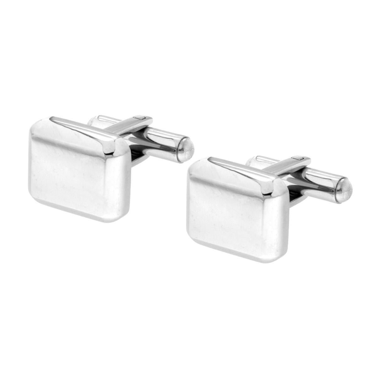 Gemelli da polsino in acciaio di forma rettangolare con bordi stondati e finitura liscia e lucida. Dimensioni 13x16 mm.