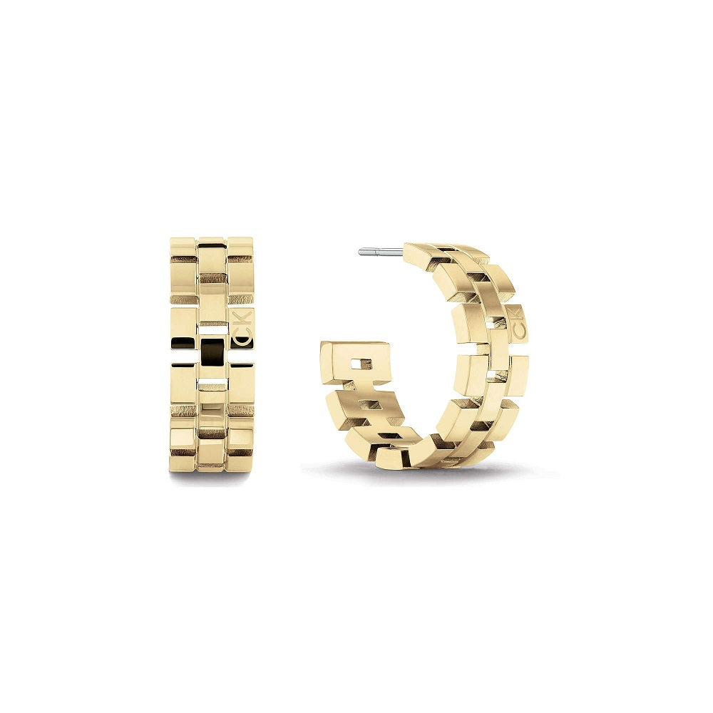 Orecchini a cerchio da donna Calvin Klein collezione Meridian ref. 35000250 in acciaio dorato. Diametro 1,6 cm. Larghezza fascia 1,1 cm. Chiusura con farfallina.