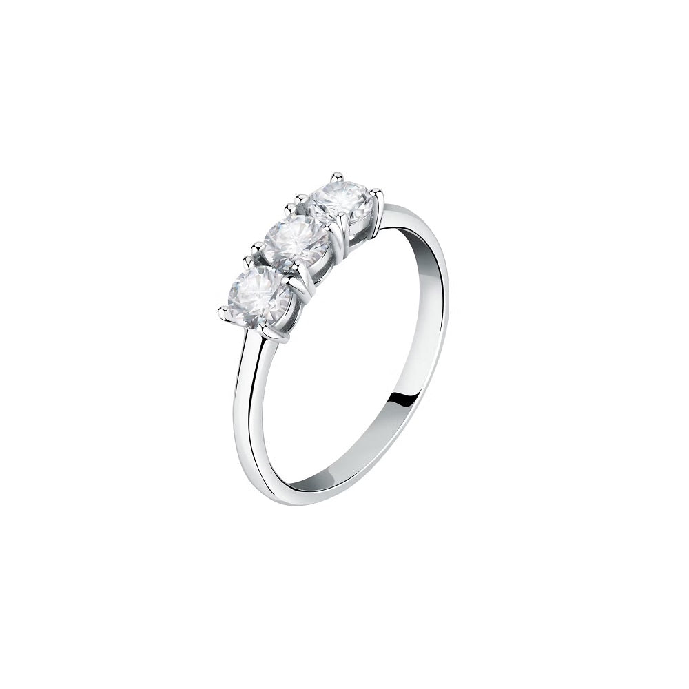 Anello trilogy da donna Morellato collezione Tesori ref. SAIW122016 in argento 925‰ con tre cristalli bianchi di dimensioni 4 mm.