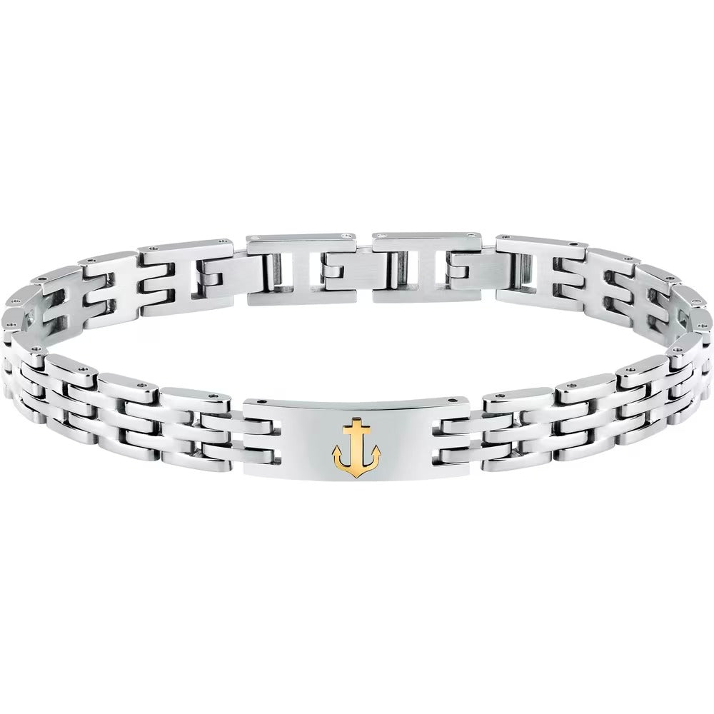Bracciale da uomo Morellato collezione Gold ref. SABY06 in acciaio e elemento in oro 18 Kt a forma di ancora. Lunghezza 18+3 cm. Chiusura a gioielleria.