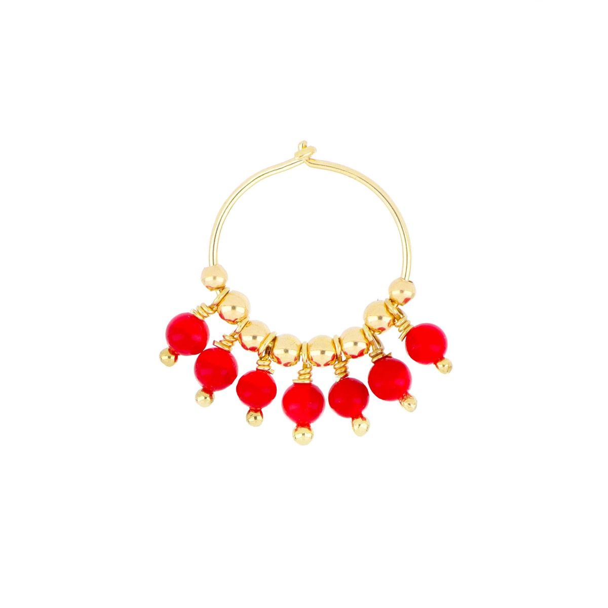 Orecchino singolo da donna Maman et Sophie ref. ORMAF00CO in argento 925‰ placcato oro giallo con pietre di pasta di corallo pendenti e sfere decorative. La lunghezza totale dell'orecchino è di 20 mm, il diametro è di 13 mm. Chiusura a gancio.