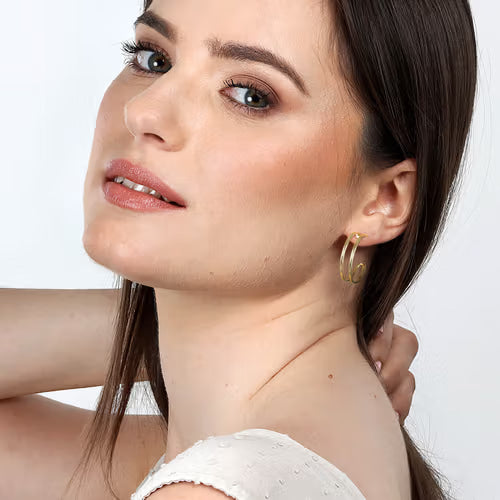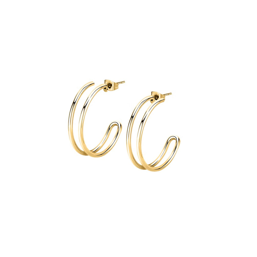 Orecchini da donna Morellato collezione Creole ref. SAVN07 in acciaio Pvd oro giallo a cerchio, impreziositi da cristalli bianchi. Dimensioni 30 mm. Chiusura con farfallina.